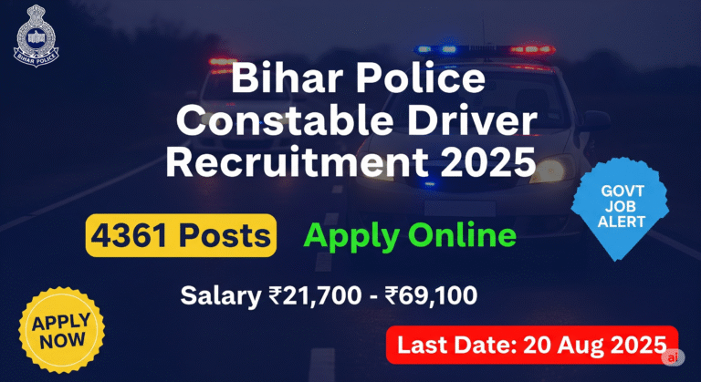 Bihar Police Constable Driver Recruitment 2025: Apply Online for 4361 Posts (21-Jul to 20-Aug)