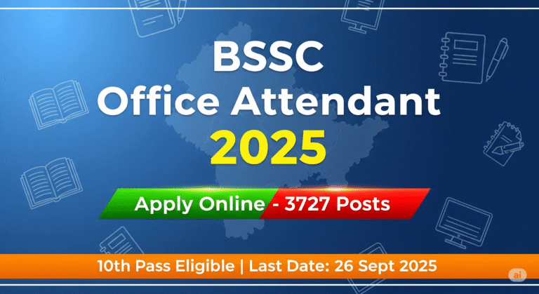 BSSC Office Attendant (Karyalaya Parichari) Recruitment 2025: Apply for 3727 Posts, 10th Pass Can Apply